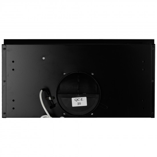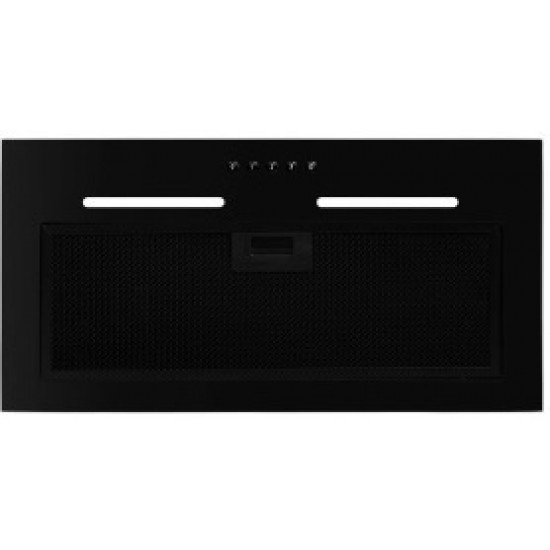 ОпцииМногослойный жироулавливающий фильтр чёрного цвета, фасад вытяжки выполнен из закаленного черного стекла